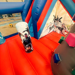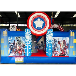 Action-packed Avengers-themed bouncy castle with obstacles and slide. Perfect for superhero parties