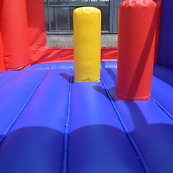 Action-packed Spider-Man bouncy castle with slide and obstacles, featuring a large standout entry an